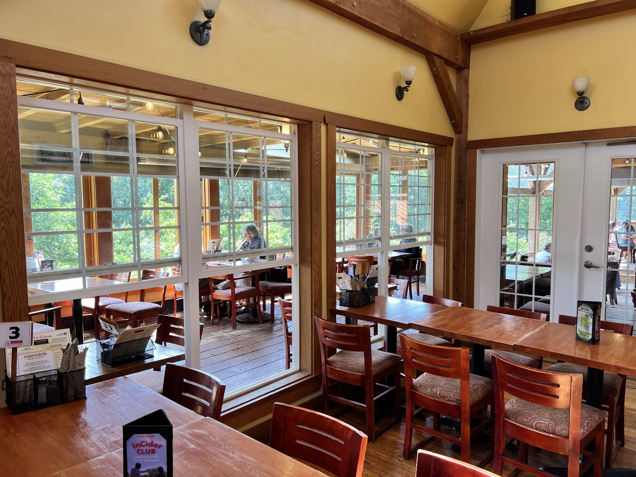 "Visited Merridale on a beautiful sunny day with my two teenagers in reluctant tow. We were all charmed by the place. The people working were welcoming and knowledgeable. The buildings of the cidery and distillery had a classic, rustic feel. The orchard was gorgeous and peaceful to stroll around. I enjoyed learning about the cider making process on the walking tour. More recently, Merridale has gone into making other spirits like brandy and gin and it was interesting to learn about this process too. For younger children they have a fairy hunt to keep them entertained. The little fairy spots were fun for us to find as well and added to the charm of Merridale. We had lunch at the eatery along with having a flight of ciders each. The teens enjoyed trying their non-alcoholic flight - the lavender was unique and refreshing. I had the new world flight and enjoyed them all. Loved that cider and the other spirits were incorporated into the food menu items! The pulled pork with cider slaw and pear brandy BBQ sauce was delicious! It was a treat to sit on their open air patio and look at the orchards while we sipped our ciders and ate our meals. We will definitely have to return!"